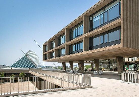 The Milwaukee County War Memorial is a memorial building located on Lake Michigan in Milwaukee, WI. It was designed by architect Eero Saarinen. Construction began in 1955 and the building was dedicated on Veterans Day in 1957.
