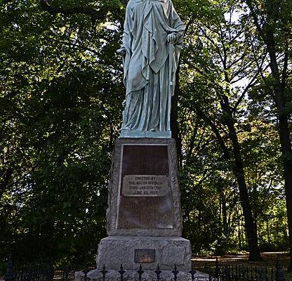 Spirit of Commerce is a public artwork by German artist Gustav Haug located in Jackson Park, which is on the south side of Milwaukee, Wisconsin. This zinc sculpture is 15 feet tall and sits on a red granite pedestal near the park's lagoon. It is the oldest public sculpture in Milwaukee.