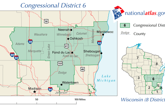 Wisconsin's 6th congressional district is a congressional district of the United States House of Representatives in eastern Wisconsin. It is based in the rural, suburban and exurban communities between Madison, Milwaukee, and Green Bay. It also includes a small portion of far northern Milwaukee County around River Hills. The district is currently represented by Glenn Grothman who took office in January 2015.