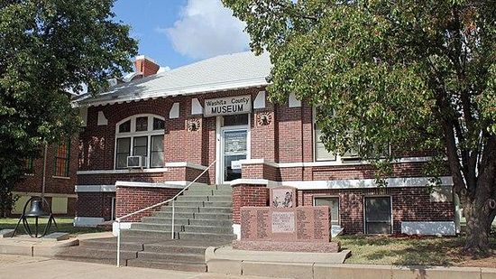 The Cordell Carnegie Public Library is a historic Carnegie library located at 105 E. First St. in New Cordell, Oklahoma. The library was built in 1911 through a $10,000 grant from the Carnegie foundation; New Cordell's Commercial Club, which had opened a reading room the previous year, solicited the grant. Architect A. A. Crowell designed the library in the Mission Revival style; several of its elements reflect the emerging Spanish Colonial Revival style. The building's curved parapet walls, exposed rafters, and original red tile roof are all characteristic Mission Revival elements; its segmental arches, sunburst moldings, and ornamental ironwork resemble Spanish Colonial Revival work. The library was the only one in Washita County until the 1960s; it also served as a community center and was regularly used by local schools. In 1982, a new library opened in New Cordell, and the Carnegie Library building became the Washita County Historical Museum.