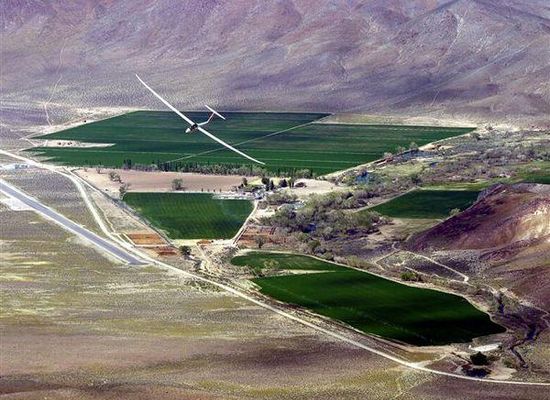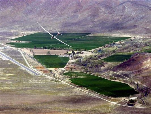 The Flying-M Ranch is a ranch and airfield located in Lyon County, Nevada. The land, which was previously owned by hotel magnate Barron Hilton, was the base for many world-famous gliding competitions, including the biennial Barron Hilton Cup. The Ranch covers about 7,139 acres of land; it is located between the Wassuk Range and the Sweetwater Mountains, west of Hawthorne and about 75 mi south of Reno, Nevada, United States. The ranch was named the Flying-M by its previous owner, Stanfield Murphy. Barron Hilton said he did not change the name because his wife, who died in 2004, was named Marilyn.