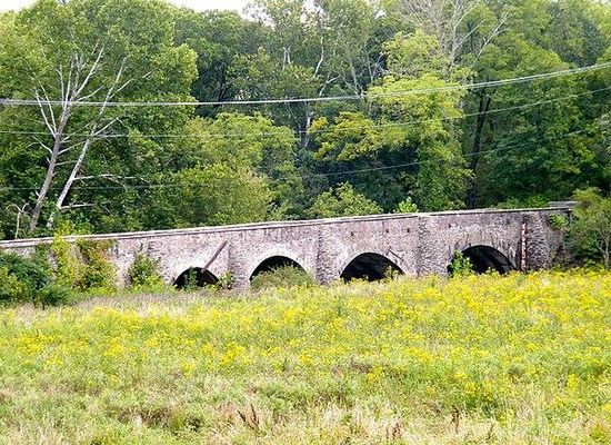 The Goose Creek Stone Bridge crosses Goose Creek in Loudoun County, Virginia. The 200-foot long stone arch bridge spans the creek in four arches. Built about 1810, it is the largest stone turnpike bridge in northern Virginia, designed to carry the Ashby's Gap Turnpike across the creek. The turnpike was replaced by U.S. Route 50, which crosses the creek a short distance to the south. The bridge is no longer used for vehicular traffic. The bridge was a center of fighting in the American Civil War on June 21, 1863, during the Battle of Upperville.