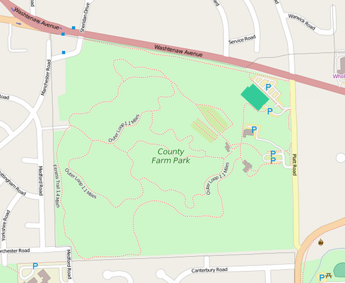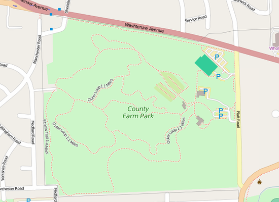 Nelson Meade County Farm Park is a 141-acre public park in eastern Ann Arbor, Michigan owned by Washtenaw County and operated by the county's Parks and Recreation Commission. Consisting of a mix of woodlands, fields, and gardens, the park is home to a wide variety of flora and fauna and is a popular local destination for gardening, hiking, jogging, and biking. The park has been county land since 1836, although for the majority of the nineteenth and twentieth centuries it was used as the county's poorhouse and then as its infirmary. In 1972, the site began transitioning to parkland with the creation of community gardens, and over the next couple decades various trails and a perennial garden were created. Since 2000, the park has experienced significant ecological restoration efforts, including the removal of invasive plants, prairie restoration, and the creation of a wet meadow during the restoration of Malletts Creek.