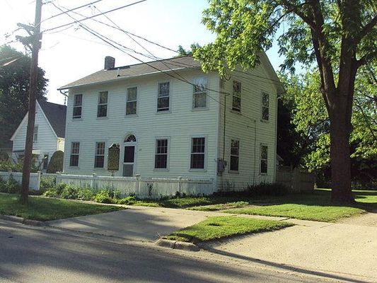 Surveyor Musgrove Evans originally platted Tecumseh in 1824 and built a crude log cabin. In 1826, Evans built this modest house at what is now the corner of Ottawa Street and Chicago Boulevard for his personal dwelling and for use as an inn for travelers. Musgrove's wife Abigail "Abi" Brown Evans, for whom a local chapter of the Daughters of the American Revolution was later named, died in the early 1830s. In 1834, Evans moved with his children to colonial Texas, where his eldest son, Samuel Brown Evans , died in the Battle of the Alamo. The house was sold to Stillman Blanchard. In 1858, Blanchard went bankrupt, and the house was sold to prominent businessman Peter R. Adams.