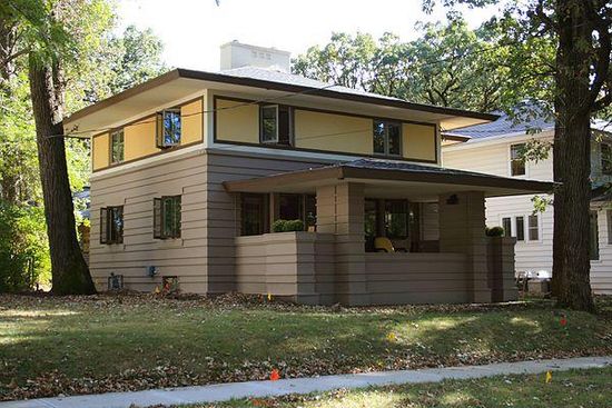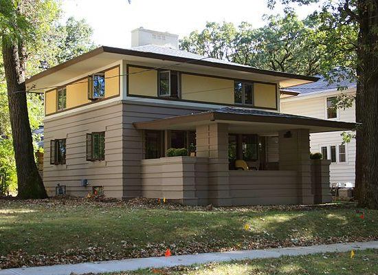 The Curtis Yelland House is a historic building located in Mason City, Iowa, United States. Frank Lloyd Wright associate William Drummond designed this Prairie School style house, completed in 1910. The house features a strong horizontal emphasis, broad hip roofs, board-and-batten siding, stucco on the upper-story, and a centrally located fireplace and chimney round which the open plan interior revolves. The main entry is on the side of the house. The only entry to the front porch is from the living room. It was listed on the National Register of Historic Places in 1980. The house suffered a devastating fire in 2008, and was almost torn down. However, developer Jeff Tierney bought the property and restored the house in 2010.
