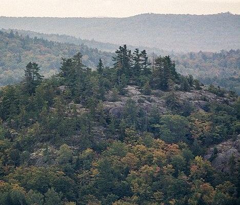 The mountains are the remnants of much higher peaks, composed of rocks dating back to the Precambrian period, which have gone through successive periods of uplift and erosion. The outcroppings of granite and metamorphic rocks bear the evidence of more recent glacial action. Geologically, the area is part of the Canadian shield.