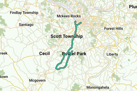 Route along some of the book/film locations in Pittsburgh region from chbosky's "The Perks of Being a Wallflower"