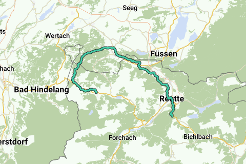 Primero se pedalea unos 500 metros río abajo hasta el puente de carretera sobre el Lech. Este se cruza en dirección este y se sigue el carril bici hacia Rieden junto a la carretera. Después de aproximadamente 1 kilómetro, se cambia a un camino de grava tras un breve ascenso hacia el camino de acceso asfaltado a Rieden. Al llegar al pequeño pueblo, se gira a la derecha hacia el lago Riedener y se siguen las rutas de ciclistas 822 (Rieden-Reutte) y 826 (Spirkenweg- Rotlech). A partir de ahí, se sigue la ruta 822 Rieden- Reutte o los antiguos letreros de la Ruta Vital de Tirol hasta el destino de la etapa.