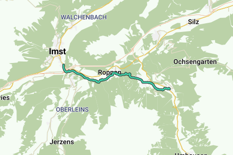 El punto de partida oficial de esta etapa es la intersección de la carretera que viene de Kühtai con la carretera federal Ötztaler en Ötz. En la carretera Ötztal, se avanza solo unos cien metros hacia el valle, para girar a la izquierda en el Achrainweg. A continuación, se continúa recto hasta el Ötztaler Ache y se sigue a lo largo de este río hasta el primer puente. Aquí se cruza el Ache y, a partir de ahí, se sigue las señales hacia Sautens. El pueblo se atraviesa por la calle del pueblo. En el borde occidental del pueblo, se pedalea por su extensión hacia el Sautener Forchet. Este pequeño bosque, salpicado de colinas y piedras, se formó a raíz de un enorme deslizamiento de tierra desde el Tschirgant opuesto. La carretera ahora desciende hasta Roppen. Se continúa bajando, pasando por las primeras casas hasta la iglesia. Aquí se mantiene a la izquierda y se gira nuevamente a la izquierda en el camino ciclista del Inn. Se sigue las señales verdes del camino ciclista del Inn hasta poco antes de Imst. Se pasa por los pequeños núcleos de Obbruck y Waldele, continuando a través de campos y prados hasta el desfiladero de Imster, hasta la estación de tren Imst-Pitztal (aproximadamente 1,5 horas desde Sautens). Después, se cruza el puente del Inn y el camino ciclista gira inmediatamente a la izquierda en un camino de campo (camino ciclista del Inn n.º 2). Desde aquí, solo quedan 200 metros hasta el "nudo de caminos ciclistas" con el camino ciclista Gurgltal n.º 5. Este va en dirección norte hacia Imst en unos 15 minutos.