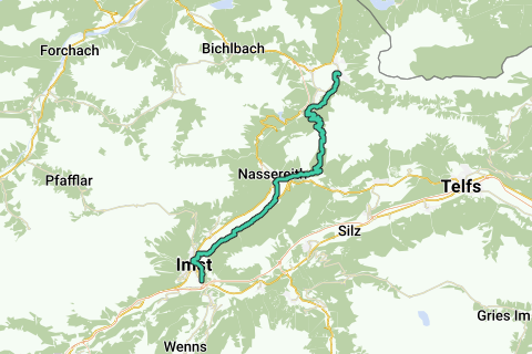 Primero se sigue el indicador de ruta en bicicleta "5 Gurgltal". La ruta transcurre el primer kilómetro a lo largo del Gurglbach y luego se continúa por la misma carretera en dirección a "Imst Zentrum". Solo en el borde norte de la ciudad se vuelve a encontrar el camino ciclista No. 5. Alternativamente, se puede rodear la ciudad por el fondo del valle en el camino ciclista. En los siguientes casi 10 kilómetros, se permanece siempre en el camino ciclista, que a menudo discurre por el bosque en el borde del fondo del valle (5). Solo al alcanzar la curva de la carretera se gira a la izquierda en dirección a Nassereith. Justo antes de la localidad, se cruza la carretera federal por el camino ciclista No. 4. Pasando a la derecha del helipuerto, se llega al distrito de Dormitz (1.5 horas desde el inicio) y se continúa por una carretera asfaltada hacia el valle Roßbach. A aproximadamente 980 m sobre el nivel del mar, se gira bruscamente a la izquierda hacia "605 Marienbergjoch" y tras una subida se llega a la aldea de Aschland. Un kilómetro después de la pequeña aldea, no se debe perder el desvío a la izquierda hacia el Marienbergjoch. Ahora se avanza a través de un bosque, parcialmente de forma empinada, pasando junto a la Marienberg Alm hacia el Marienbergjoch (3 horas desde Dormitz). A continuación, se sigue una bajada inicialmente bastante empinada a través de la zona esquiable hasta poco antes de la carretera hacia Biberwier, donde se cambia al "Lärchenweg". En el camino panorámico, ahora se pedalea ligeramente cuesta arriba y abajo hacia Ehrwald (1.5 horas desde Marienbergjoch).
