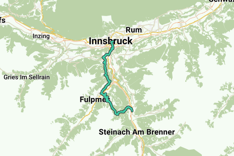 El punto de partida es la estación de tren en Matrei am Brenner. Desde allí, hacia el norte a través del centro del pueblo hasta el desvío "Mützens, Iglesia de peregrinación Maria Waldrast". Aquí, girar a la izquierda. La ruta atraviesa inicialmente por debajo de la autopista hasta el barrio de Mützens. Después de las últimas casas, pasar el peaje y seguir por el arroyo Waldraster. El recorrido continúa en algunas serpentinas hasta el área de montaña y más allá hacia el monasterio de peregrinación Maria Waldrast. Aquí termina la carretera asfaltada y un camino forestal continúa recto hasta el punto más alto, que también representa la transición al Valle de Stubai. Aquí el camino forestal se bifurca y la ruta se dirige hacia Mieders. En la ruta 559, ahora desciende hasta las primeras casas en Mieders. En la estación inferior del teleférico, girar a la izquierda en la carretera hacia Fulpmes, siguiendo la "Pequeña ruta del valle 566". Después de 600 metros, girar a la derecha. Ahora seguir la carretera hacia abajo, pasar por debajo de la carretera Stubaital hasta el puente sobre el Ruetz. Luego girar a la derecha hacia el valle en dirección a "Gallhof, Telfer Wiesen". La ruta pronto vuelve a subir y el camino forestal se bifurca. A la izquierda, hacia arriba, va el camino "Telfer Wiesen". Poco después de cruzar las vías del tren Stubaital, girar en un ángulo hacia la derecha en dirección a "Kreith, Mutters". La ruta ahora avanza en ligeras subidas y bajadas a través de prados y bosques, casi siempre paralela al tren, hasta el barrio Kreith de Mutters. Al llegar a la carretera asfaltada en Kreith, seguir recto hasta la iglesia de Mutters. Aquí, rodar en diagonal hacia la derecha, en dirección a Innsbruck, hasta volver a cruzar las vías del tren. Inmediatamente después, la ruta se desvía hacia Natters. Continuar a través del centro del pueblo y por la carretera hacia Innsbruck. En una rotonda se alcanza la carretera federal Brenner, que lleva un buen kilómetro en dirección a Innsbruck. Justo antes del cruce ferroviario, girar a la derecha en una calle lateral. Esta calle conduce hasta el trampolín de Bergisel (prestar atención a las indicaciones de acceso). Desde el estadio de salto, seguir descendiendo hasta que nuevamente aparezca la carretera federal. La ruta continúa recto pasando por el monasterio de Wilten (a mano derecha) y la basilica de Wiltener (a mano izquierda) hacia el centro de Innsbruck. Allí, seguir por la Leopoldstraße hasta la Puerta del Triunfo. Aquí, girar a la derecha en la calle Salurner y después de aproximadamente 300 metros se alcanza la estación principal de tren de Innsbruck. Los trenes de ÖBB regresan al punto de partida en Matrei am Brenner en aproximadamente 20 minutos.