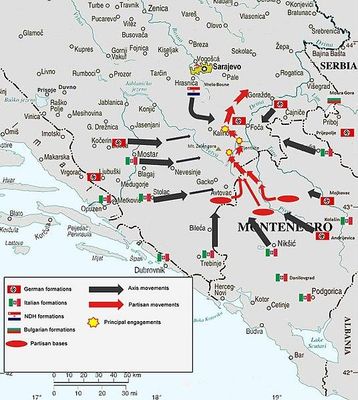 La Batalla del Sutjeska , cuyo nombre en código era Operación Schwarz, fue un ataque conjunto de las Potencias del Eje que tuvo lugar del 15 de mayo al 16 de junio de 1943, y cuyo objetivo era destruir la fuerza principal de partisanos yugoslavos, cerca del río Sutjeska, en el sureste de Bosnia. El fracaso de la ofensiva marcó un punto de inflexión para Yugoslavia durante la Segunda Guerra Mundial.