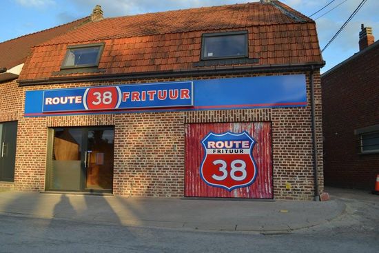 Frituur Ruta 38 es un nuevo negocio de estilo retro. Ubicado en la frontera francesa en Abele, es el lugar por excelencia para un delicioso bocadillo. ¡Especialidad hamburguesas de carne 100% disponibles en la plancha!