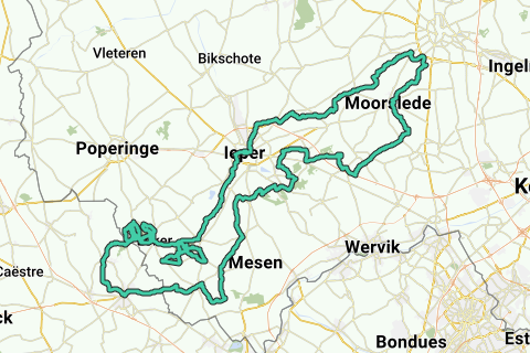 Desde Wijtschate, a través de Wulvergem y la pintoresca Zuidlindestraat, nos dirigimos hacia Nieuwkerke, para luego cruzar la frontera hacia el encantador Bailleul (FR) – el punto de giro de este bucle.