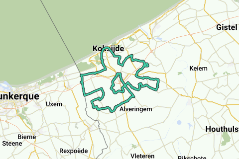 Ruta en bicicleta basada en los puntos de conexión de ciclismo, a través de los 11 municipios de Veurne.