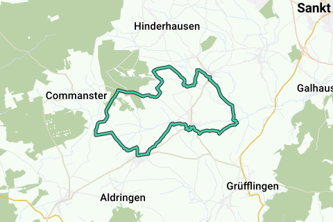 La distancia es casi de 17 kilómetros. Esto puede ser demasiado para algunos. Por eso podemos dividir el circuito en dos partes. Esto se puede hacer perfectamente entre los puntos 65 y 64 (lazo Maldingen) o 65 y 22 (lazo Braunlauf). Estas caminatas están descritas por separado en RouteYou: