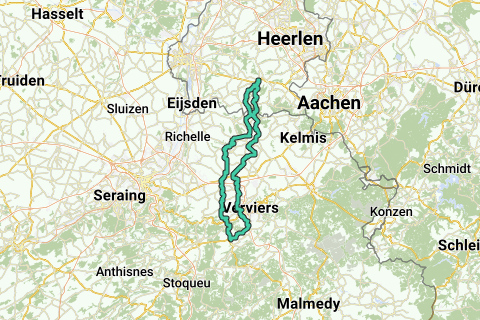 Inicio/fin: esquina Marktstraat/Rijksweg Gulpen. Ascensiones: seguir. Metros de altitud: 1250. Parada para café: L'Amarante, Rue du Pont 6, Theux (B).