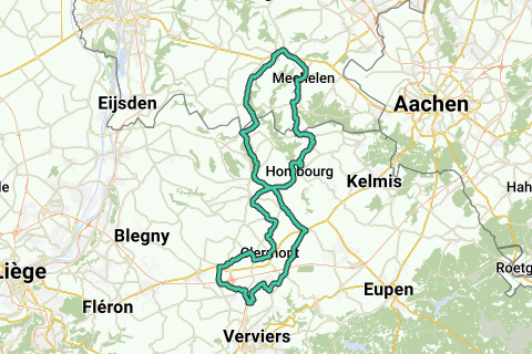 Inicio/fin: esquina Marktstraat/Rijksweg Gulpen. Ascensos: Grensweg Slenaken. Plankerweg Teuven (B). Val de la Berwinne (parcialmente) Florence (B). Les Béolles/Thier (parcialmente) Clermont (B). Côte de Stockis Battice (B). Rue Tapeu (parcialmente) Dison (B). Rue de Verviers Henri-Chapelle (B). Rue de Beusdael (parcialmente) Sippenaeken (B). Wilhelminastraat Epen. Metros de altura: 684.