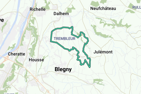 Elige una caminata de la red Réseau Vert des Initiatives Locales (Réveil) del municipio de Blegny. Sigue la señalización "Rectángulo azul + 1" (ver foto a continuación).