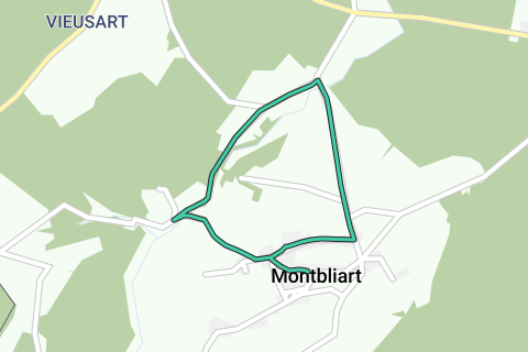 Montbliart, el pueblo más pequeño del municipio de Sivry-Rance, se encuentra en medio de un paisaje de colinas y valles por los que fluyen los ríos Kleine Helpe y Ry de Fromont. La caminata comienza en la iglesia y atraviesa el entorno rural verde con casas antiguas y Bruyères, una aldea del siglo XIX. Luego, tome el Gran Camino, la calle principal del pueblo que conectaba las herrerías en la Edad Media. La capilla fue construida en 1681 y tiene una hornacina de mármol de Rance, el pueblo vecino con canteras que estuvieron activas hasta mediados del siglo XX.