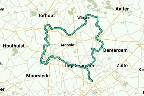 Ruta en bicicleta de carreras por solo partes asfaltadas de la red de puntos de ciclismo. Esta ruta en bicicleta de carreras comienza y termina en el Café Chasse Patate. Este café fue incluido en la serie "Tour de café, paseos por diez cafés ciclistas flamencos".