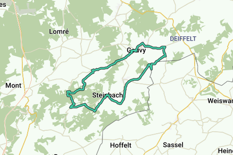 El recorrido se retira luego en el valle pasando por el sitio de la roca de Bistain y asciende hacia Cetturu para unirse a la meseta de pasto y al pueblo de Steinbach (33). Asciendes progresivamente hacia la cresta (que también corresponde al límite entre la cuenca del Mosa y la del Rin) y recuperas el RAVEL. Dirección a la frontera belgo-luxemburguesa (27) que sigues para alcanzar Wathermal y descender nuevamente a tu punto de partida.