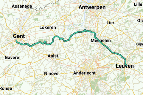 A lo largo del Rupel y el canal Mechelen-Leuven hasta el destino.