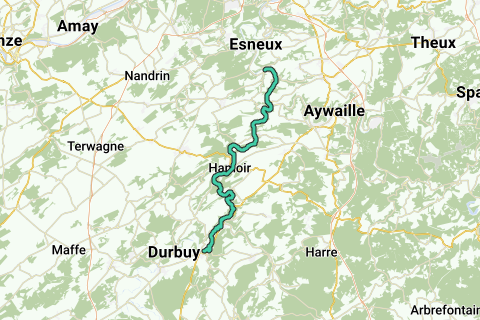 En principio, puedes navegar más allá de Poulseur: 4 km más hasta Esneux, 9 km hasta Hony, 14 km hasta Méry, o 16 km hasta Tilff. Cada una de estas localidades tiene una estación de tren con conexiones hacia Liège o Marloie.
