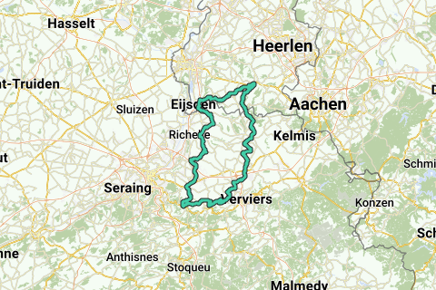 Salida/meta: esquina de Marktstraat/Rijksweg Gulpen. Subidas: a seguir. Metros de altura: 1154.