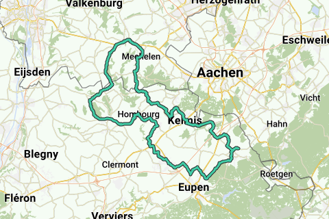 Inicio/fin: esquina Marktstraat/Rijksweg Gulpen. Ascensos: seguir. Metros de altitud: 886. Ruta a lo largo de los siguientes castillos: Chateau de Bempt Moresnet (B). Vlattenhaus y Haus Amstenrath Eynatten (B). Burg Raeren y Haus Raeren Raeren (B). Knoppenburg Neudorf (B). Schloss Thal Kettenis (B). Chateau De Ruyff Ruyff (B). Chateau De Streversdorp Montzen (B). Castillo Magis y Castillo De Commanderie St. Pieters-Voeren (B). Castillo Karsveld y Castillo Neubourg Gulpen (NL).