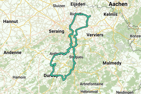 St.Jean-Sart – Val-Dieu ∆ – ∆ Charneux – Herve – Soumagne – Fléron – Bay Bonnet – Prayon – Trooz – ∆ Gomzé-Andoumont – ∆ Stinval – ∆ Sendrogne – Noidré – Damré – ∆ Florzé – Aywaille – ∆ les Crètalles - ∆ Harzé – ∆ Houssonlonge – ∆ Faweux – ∆ Ernonheid – ∆ Le Grand-Trixhe – Burnontige – ∆ Fays – Roche-à-Frêne - Laforge – Fanzel ▲– Heyd – Barvaux ∆ – DURBUY – ∆ Tohogne – ∆ Ouffet – Anthisnes – Mont – Comblain-au-Pont – ▲ Rivage – Fraiture – Presseux – ▲Lincé – Hornay – Dolembreux – Beaufays – Ninane – Chaudfontaine – ▲ Lemmetrie – Romsée – Beyne-Heusay – Bois-de Breux – Jupille-sur-Meuse – Argenteau – Richelle - Dalhem – Mortroux – Val-Dieu – St.Jean-Sart.