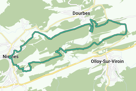 Tenga en cuenta que el camino a lo largo de la Viroin (desde aproximadamente 10,5 km) puede ser muy embarrado, especialmente después de la lluvia. Existe un camino alternativo un poco más arriba, aunque nosotros no lo hemos probado. El punto de inicio y de fin de la caminata es, al igual que en la ruta más corta, el aparcamiento de acceso libre en el centro de Nismes, donde también hay algunas plazas de aparcamiento para autocaravanas de pago.