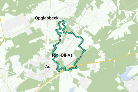 Hacia la parte norte del bucle, pasas por el Bosbeek. El Bosbeek nace en la frontera de As con Genk. Forma a lo largo de una distancia de 2.5 km la frontera entre As y Opglabbeek, una parte del municipio de Oudsbergen. Luego, el Bosbeek fluye a través de Opoeteren y Neeroeteren para desembocar en Aldeneik (cerca de Maaseik) en el Mosa. El Bosbeek tiene un gran desnivel, lo que lo hizo especialmente adecuado para los molinos de agua. El molino de Theunissen es uno de los 12 molinos en el Bosbeek.