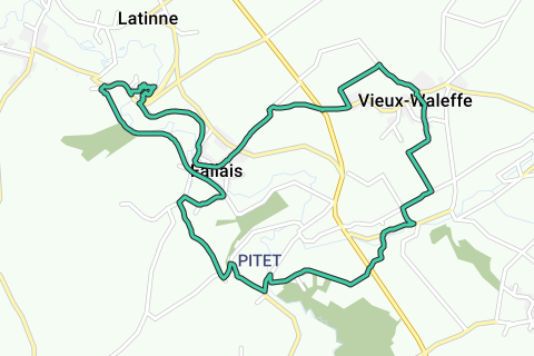 Luego a través de Thier des Broux hacia el centro de Fallais. Hacia Chappelle-Calvaire y luego al centro de Vieux-Waleffe. A través de los campos hacia el centro de Dreye. Luego a través de Pitet hacia el castillo de Fallais (el exterior siempre se puede visitar). Finalmente, a través de Ravel 127 de regreso al punto de inicio.