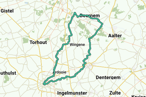 Los 75 km van, justo más allá de la E40, a la derecha en dirección al ‘canal Brugge-Gent’. A lo largo del canal montamos en bicicleta hasta más allá de ‘Sint-Joris’.