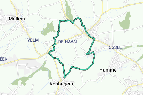 INICIO: Frente a la iglesia Pastoor Isidoor Stallaertplein sobre el Gran Molenbeek a la izquierda -= Veldeken - hasta la primera a la izquierda = seguir Broekweg hasta la T Steenweg en Asse girar a la derecha hasta la capilla a la izquierda = Kersgatstraat seguir este camino hasta el + cruce ahí a la derecha hasta el primer camino de campo a la izquierda seguir el Punto de Conexión 415 (camino de campo) dirección (Steenberg) = Mollemstraat ahí a la derecha.