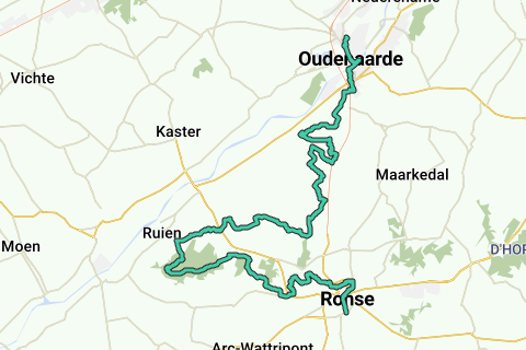 El sendero GR comienza en Oudenaarde, pasa por Koppenberg y, a través de Kluisbergen y Ronse, llega a Geraardsbergen. Luego, el sendero continúa a través de Sint-Lievens-Esse, Rozebeke y Maarkedal hasta Etikhove.