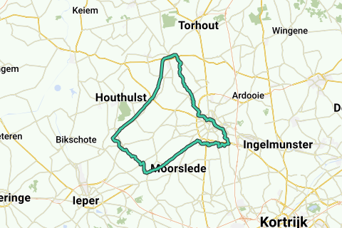 Oekene-Kortemark-Staden-Zonnebeke-Oekene entre otros a través de la antigua vía Torhout-Ieper y Ieper-Roeselare.