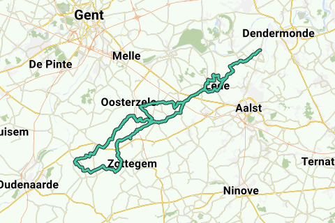 Ruta en bicicleta de carretera con inicio en la iglesia de Oudegem. Un recorrido variado hacia las Ardenas flamencas. Las colinas de la región de Zwalm no son muy altas, pero son sin duda hermosas. Ideal como calentamiento al inicio de la temporada de ciclismo. Subidas y bajadas, sin verdaderos rompepiernas.