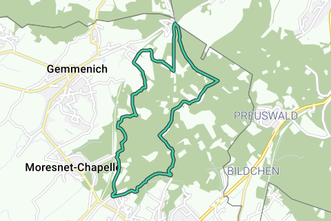 Desde el punto de conexión 32 (V) se dirige hacia el viaducto, a la izquierda (LA), pasando por el aparcamiento, y tras apenas 400 m de caminata llegarás al punto de conexión 45. Sigue recto hacia abajo (derecha del tren) en dirección al 36. Allí te encontrarás con un camino, es decir, la Rue Haute (el resto de la ruta son ‘caminos lentos’). En el 36, gira a la izquierda (LA) y durante 1 km en dirección al 60, cambiando de dirección a veces. Presta mucha atención a las señales. Una vez que te salgas del camino asfaltado (después de unos 300 m): ¡quédate sobre todo en el bosque! Sigue el sendero serpenteante y tras un rato llegarás a un árbol medio caído, donde girarás a la izquierda (LA) en dirección al 60 por un camino en subida. En una intersección de caminos (punto de conexión 60), gira ahora a la derecha (RA) en dirección al 74. Después de 200 m ya habrás llegado al 74, donde también hay un refugio de madera (1). Aquí giras a la izquierda (LA) en dirección al 7. Subida, primero suave y luego más empinada, y en la cima continúa recto (RD), bajando y justo antes de llegar al 7, subir empinadamente. Aquí verás un cartel de madera que dice 'Gemmenich'. Sigue a la derecha (RA) en dirección al 20 por un camino más amplio. Ahora estás a mayor altitud. Después de un buen rato caminando, llegarás al 20. Sigue recto (RD) hacia Aachen (cartel) y el punto de conexión 87. Rápidamente llegarás al 87 por asfalto, donde girarás a la izquierda (LA) por un camino asfaltado más amplio hacia el 86. Después de 300 m llegarás al punto de conexión 86. Aquí continúa por un camino asfaltado a veces serpenteante hacia el punto de conexión 37, donde alcanzarás el objetivo de la caminata, el Punto Trifinio (Bélgica, Países Bajos, Alemania)(2) y la cima de la Vaalserberg (la ‘montaña’ más alta de los Países Bajos). Aquí puedes visitar la torre del Rey Baudouin de 50 m de altura (panorama único) y admirar varias viejas marcas de frontera. Continúa hacia el punto de conexión 27 por un sendero estrecho, cubierto de piedras y empinado hacia abajo. ¡Un buen calzado es necesario! En el 27, gira a la derecha (RA) hacia el punto de partida, el punto de conexión 32, durante más de 3 km. Primero seguirá empinadamente hacia abajo, a lo largo del ferrocarril, luego vuelve al bosque y siempre subiendo y bajando. El recorrido está bien señalizado. Después de tu caminata, puedes visitar el hermoso parque con la Vía Crucis en Moresnet-Chapelle.