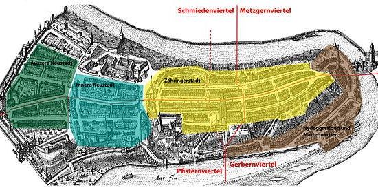 La Ciudad Vieja alberga la catedral más alta de Suiza, así como otras iglesias, puentes y una gran colección de fuentes renacentistas. Además de muchos edificios históricos, las sedes de los gobiernos federal, cantonal y municipal también están situados en la Ciudad Vieja. Es un sitio declarado Patrimonio de la Humanidad por la UNESCO desde 1983 debido al núcleo medieval generalmente intacto, y es un excelente ejemplo de incorporación del mundo moderno a una ciudad medieval. Numerosos edificios en la Ciudad Vieja han sido designados como Propiedades Culturales Suizas de Importancia Nacional, así como toda la Ciudad Vieja.[1]