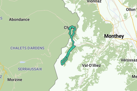 Este sendero transcurre parcialmente por https://www.routeyou.com/nl-ch/route/view/11406783/recreatieve-wandelroute/morgins-pad-van-de-32-bruggen-van-de-vallon-de-they y https://www.routeyou.com/nl-ch/route/view/11377110/recreatieve-wandelroute/regenboogwaterwandeling-morgins partiendo desde Chátel por senderos de montaña