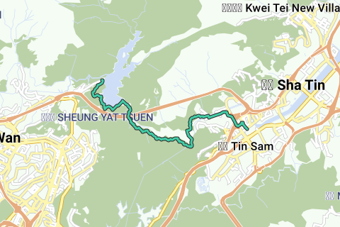 Ruta de senderismo en el embalse de Shing Mun: Represa de piña>Represa principal>Debajo de los túneles de Shing Mun>Represa principal del embalse de Shing Mun inferior>Mei Tin Estate>Tai Wai