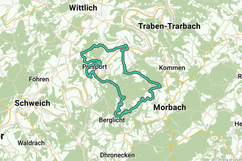 Un largo descenso de 10 kilómetros te lleva de nuevo al valle del Mosela. Sigues un tramo de caminos no accesibles para automóviles a lo largo del Mosela. Cruzarás el Mosela hacia Piesport y pedalearás a través de viñedos y luego subirás el Piesporter Berg por la Panoramastraße, que te ofrece impresionantes vistas del valle del Mosela. Finalmente, son solo unos kilómetros de ligera bajada hasta que vuelvas a Klausen.