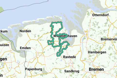 Este tour está caracterizado por unpaisaje costero marítimo. Aquí se encuentran barcos pesqueros con "grandes buques" yromanticismo portuario con la animada actividad del JadeWeserPort. Laciudad marinera de Wilhelmshaven invita a un paseo por la playa del sur o un recorrido por la ciudad. La primera etapa pasa por el romántico castillo de agua Gödens, a través de la selva tropical de Friesische Wehde, pasando por Dangast hasta Varel. En el puerto de Varel, definitivamente debería probar un bocadillo de pescado.
