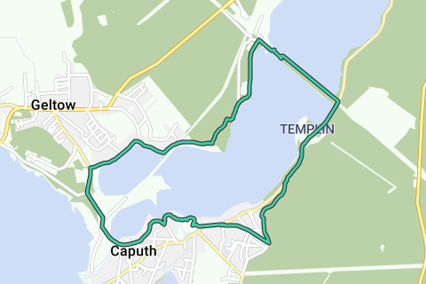 Después de cruzar en el ferry Tussy II, siga la carretera hacia Geltow inicialmente por el camino peatonal y ciclista en el lado izquierdo. Pocos metros detrás del puente Wentorfgraben, gire a la derecha en un camino forestal que pronto lo llevará al Petzinsee y a la carretera costera "Am Petzinsee". En esta carretera asfaltada recorrerá los siguientes kilómetros de la caminata. Un primer lugar de baño con zona de césped le espera poco antes del final del lago. Luego cruzará la línea de tren hacia Potsdam-Pirschheide. Pronto se encontrará ante la decisión de si puede atravesar el camping o debe usar el camino de alrededor (cerradura del camping por motivos estacionales).
