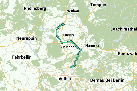 Puntos de interés: Castillo de Oranienburg, Castillo de Liebenberg con su finca, Castillo de Hoppenrade con parque y capilla, Castillo de Meseberg, Huwenowsee, casco antiguo de Gransee. Opciones de combinación: ninguna información. Estado de la ruta / desarrollo del recorrido: 96% pavimentado – 4% sin pavimentar.