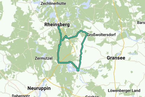 Llegada / salida: Transporte público: desde la estación principal de Berlín con el Regionalexpress RE 5 (Stralsund/Rostock) hasta Löwenberg (Mark), transbordo a la Regionalbahn RB 54 hasta Rheinsberg. Coche: desde Berlín por la autopista A111 hasta el cruce de Oranienburg, luego por la carretera federal B96 hasta Gransee, luego por carretera rural hasta Rheinsberg. Trayectoria: Rheinsberg, Zippelsförde, Lindow (Mark), Köpernitz, Rheinsberg. Puntos de conexión: (Inicio/destino en el Triangelplatz en Rheinsberg) 80, 81, 82, 74, 73, 70, 35, 82, 81, 80.