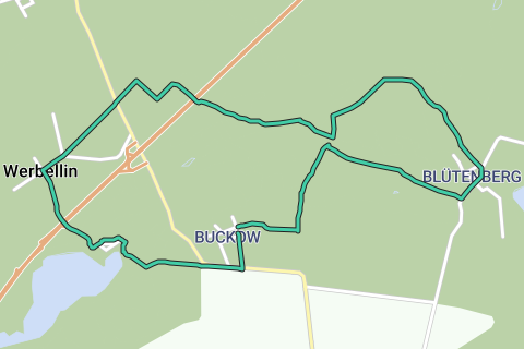 Descripción del camino: El camino lleva desde el aparcamiento a través de praderas y campos hacia Blütenberg, desde allí a través de Margaretenhof hacia Werbellin. A través del pueblo en dirección al Buckowsee y luego a lo largo de la pista de bicicleta Altenhof-Lichterfelde de regreso a Buckow.
