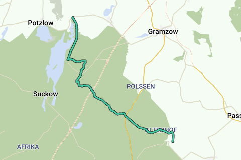Recorrido: Biesenbrow, Schmiedeberg, Grünheide, Melzow, Warnitz, Seehausen